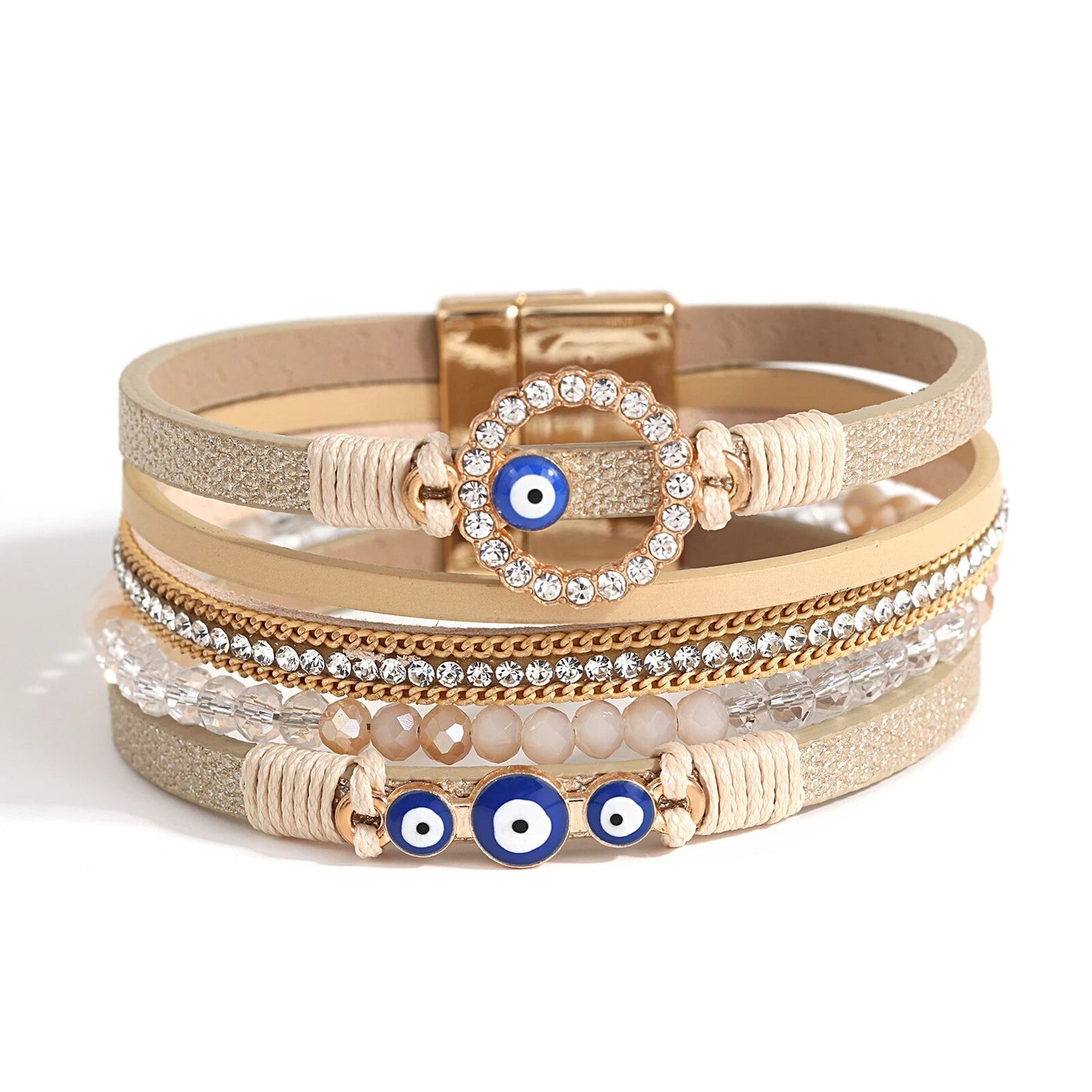 Bohemian Evil Eye Red Leather Rhinestone Bracelet