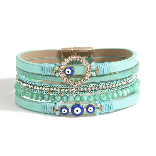 Bohemian Evil Eye Leather Bracelet/Bangle Light Green