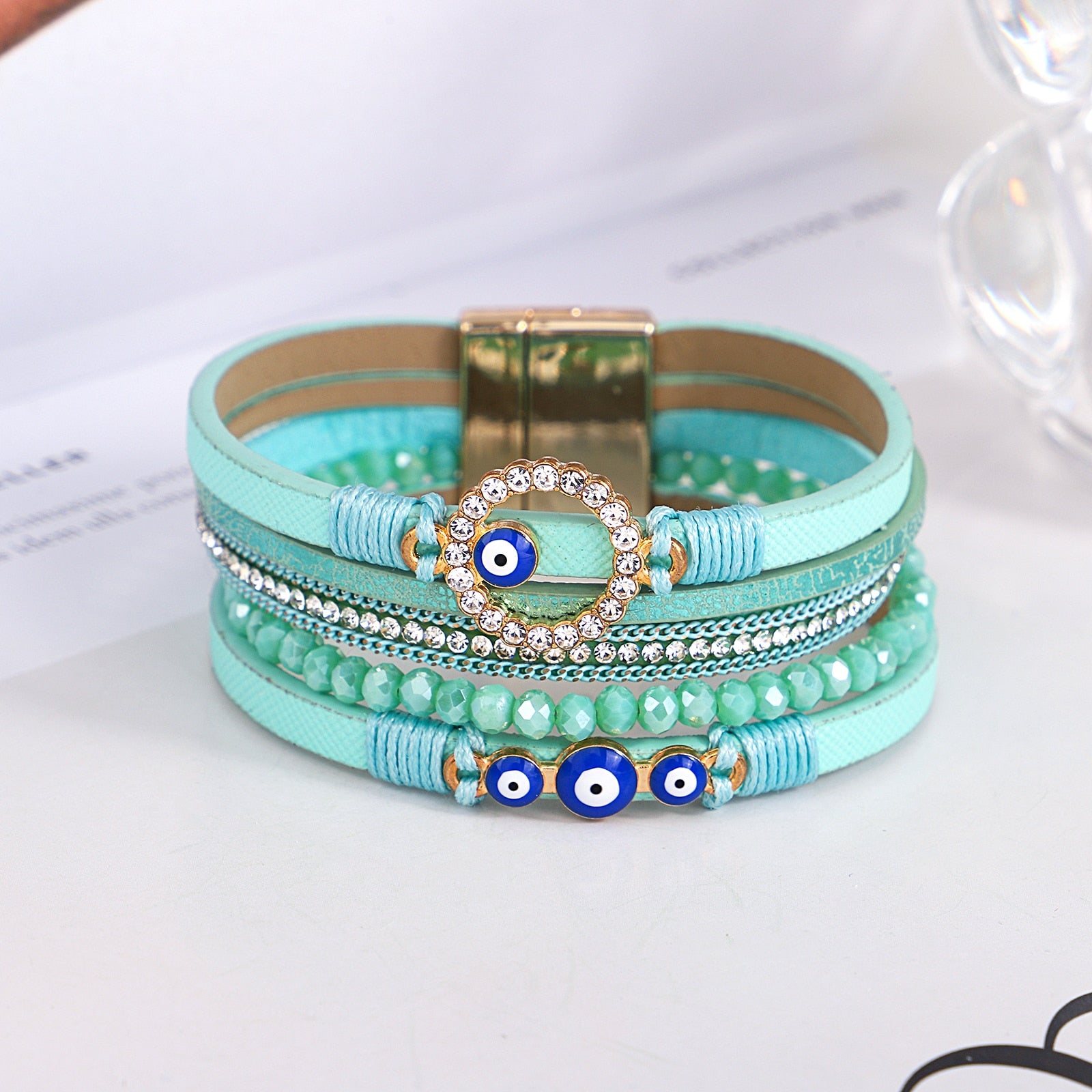 Bohemian Evil Eye Leather Bracelet/Bangle Light Green