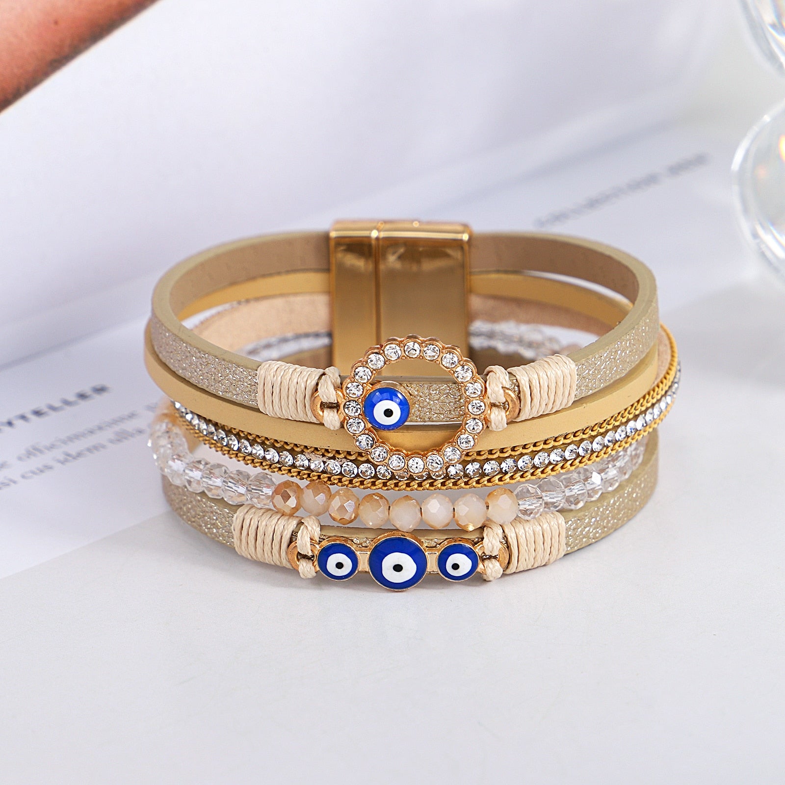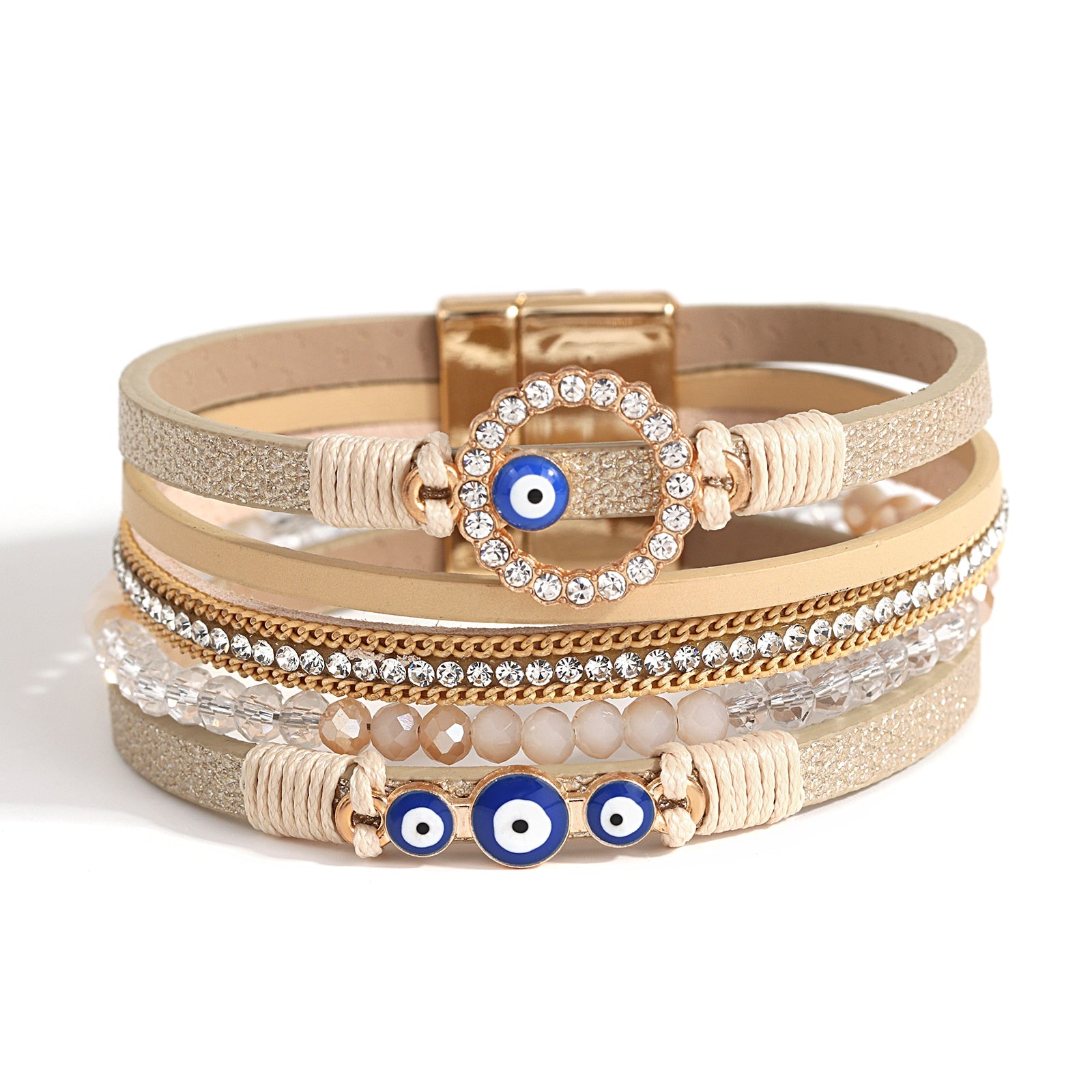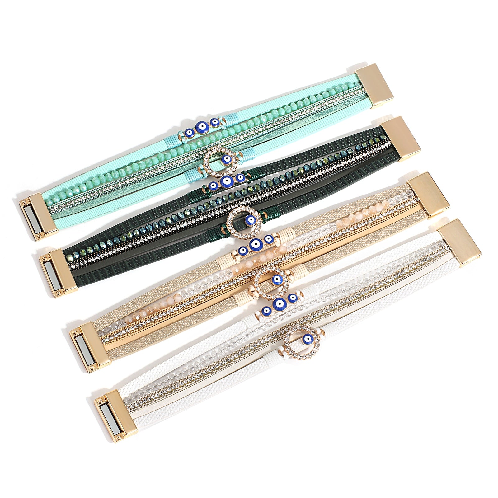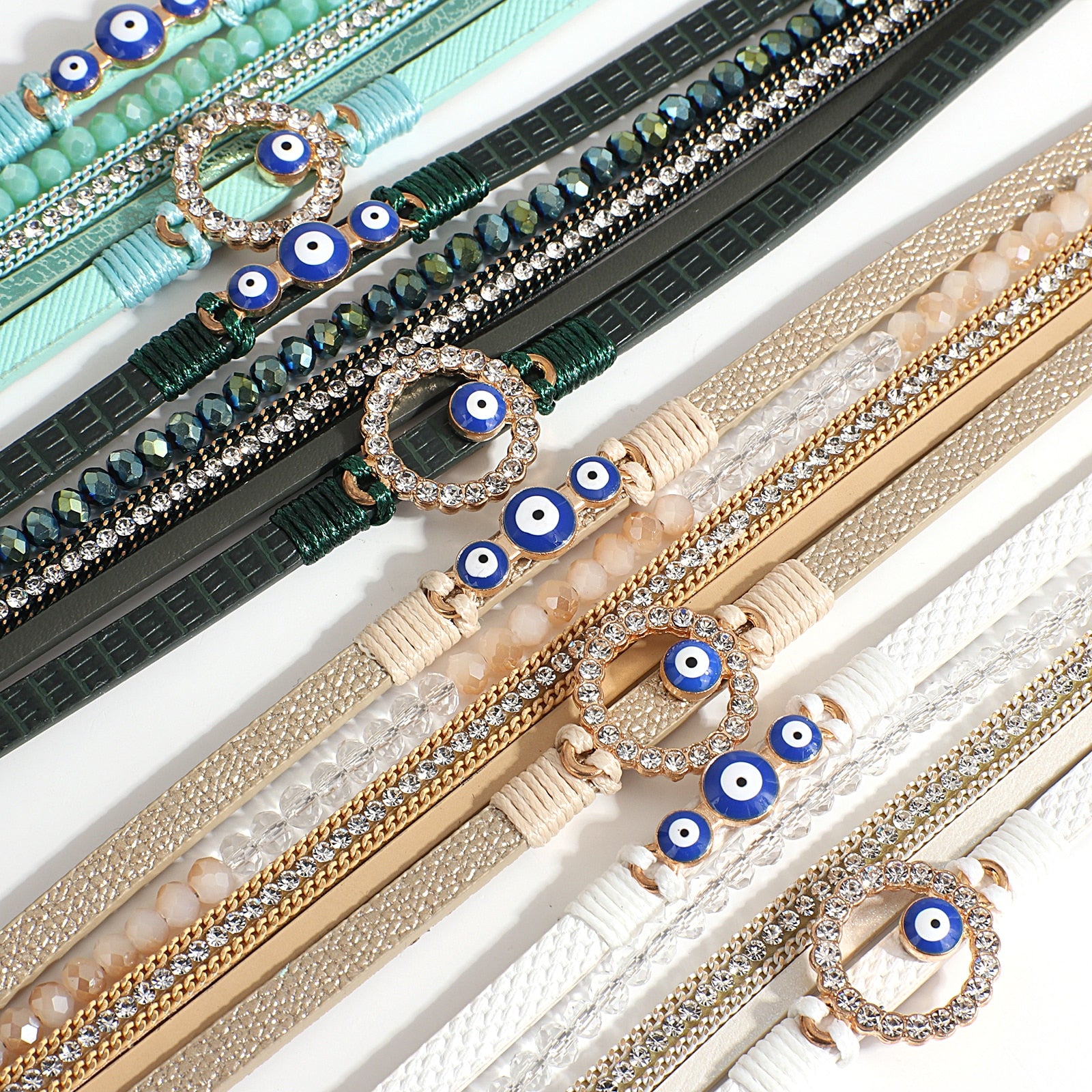 Beautifully crafted Evil Eye Bohemian style leather Bracelets. Simply unique ladies fashion accessories.