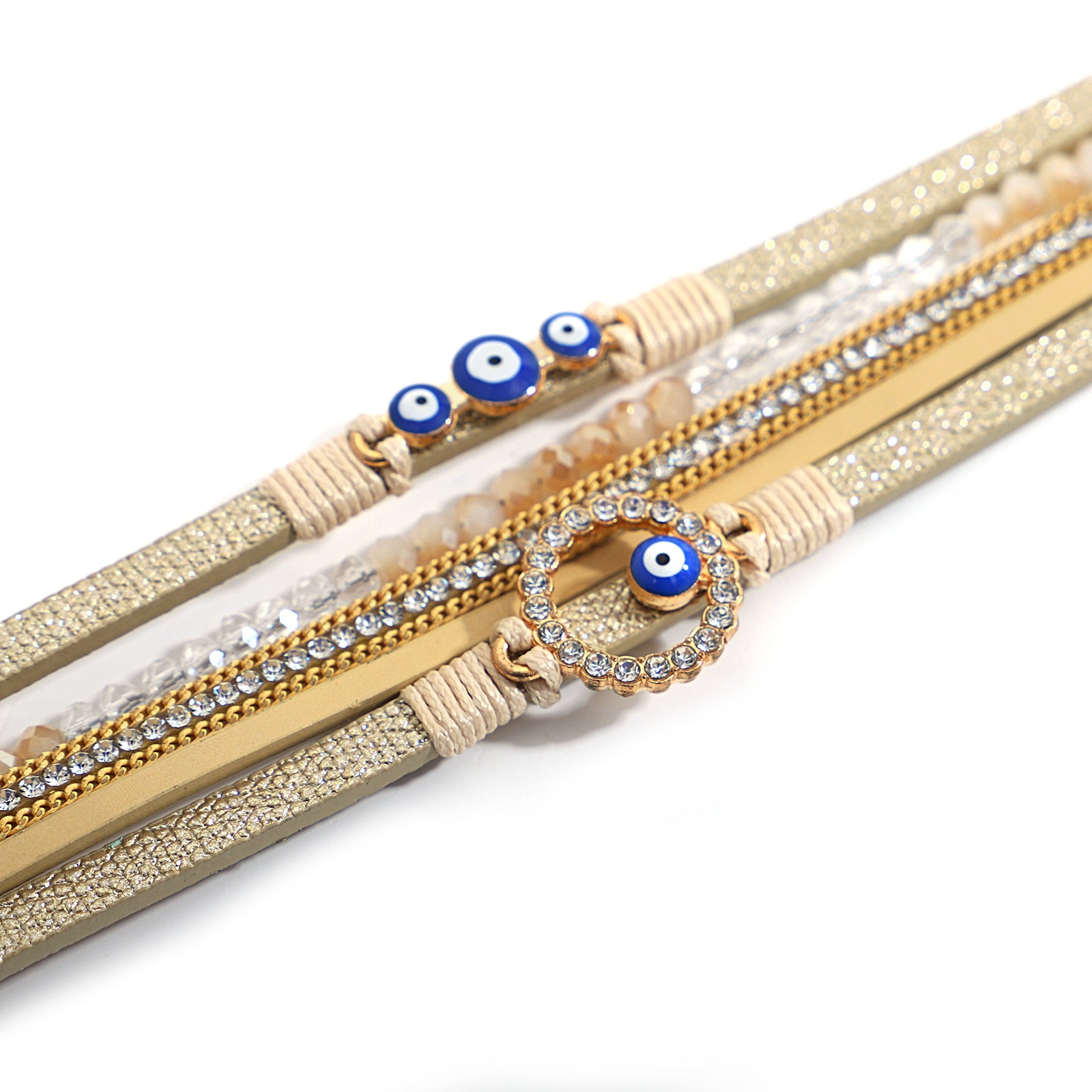 Bohemian Evil Eye Khaki Leather Bracelet Charm.